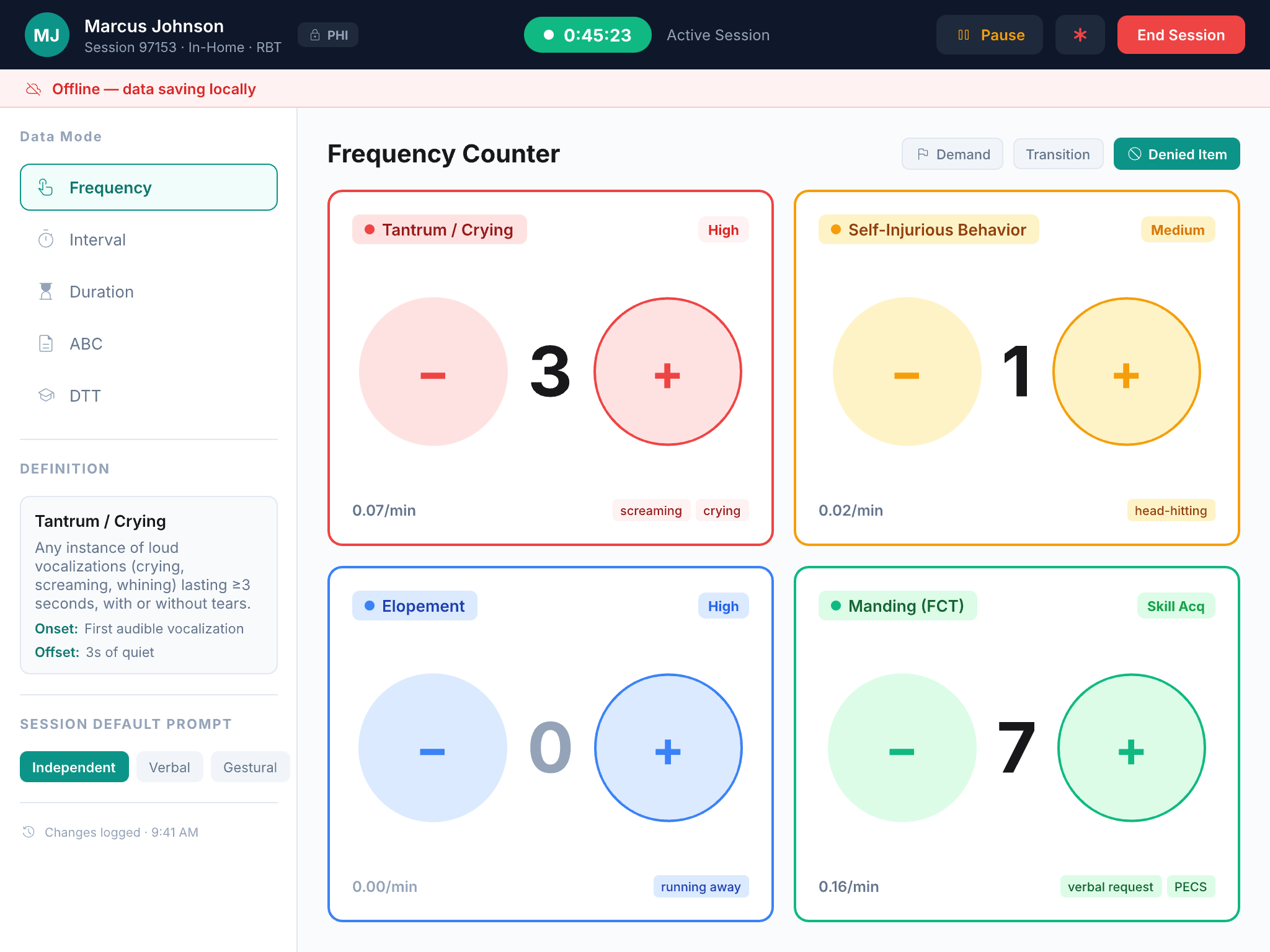 HIPAA-compliant ABA practice management — reduce documentation time by 40% with automated data collection, scheduling, and clinical workflows.